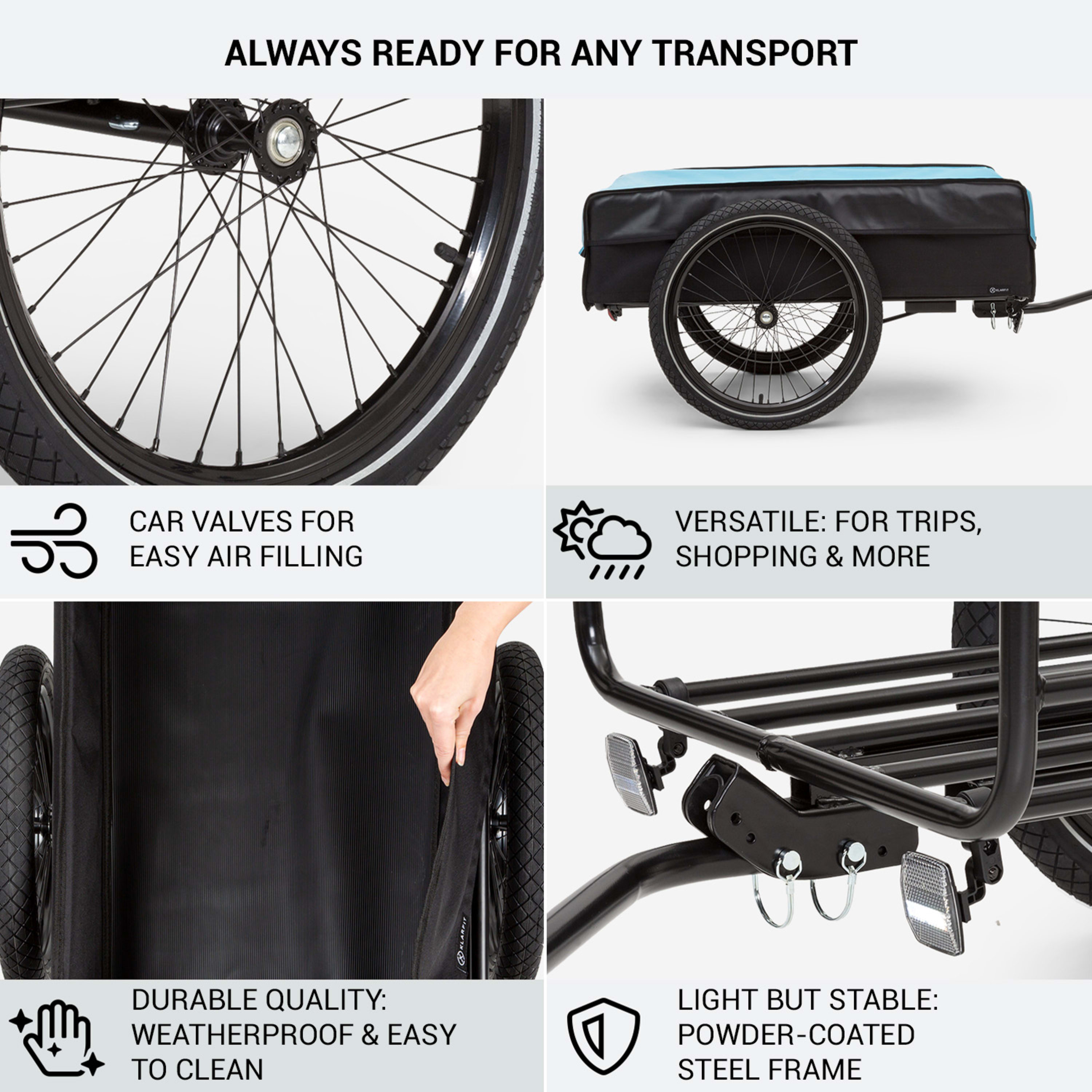 Napunite i transportirajte ekološki! Cargo Trailer Companion L iz Klarsteina je stručnjak kada se radi o jednostavnom prijevozu biciklom ili pješice - za kupovinu, vrtlarenje, piknike, sportsku opremu za trening na otvorenom ili čak trekking ture biciklom. Zahvaljujući svojoj maloj širini, Companion L je izuzetno okretan i nudi vam maksimalnu udobnost kao prikolica za bicikl. Možete pohraniti do 3 sanduka s pićem na njegovu dugačku površinu za pohranu duljine približno 100 cm - od sada će prenošenje vode ili piva biti lak zalogaj.